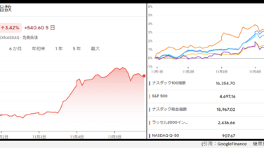 投資新着情報【レバナス】11月12投資状況 ~4日ぶり反発 持ち直すか NASDAQ100~